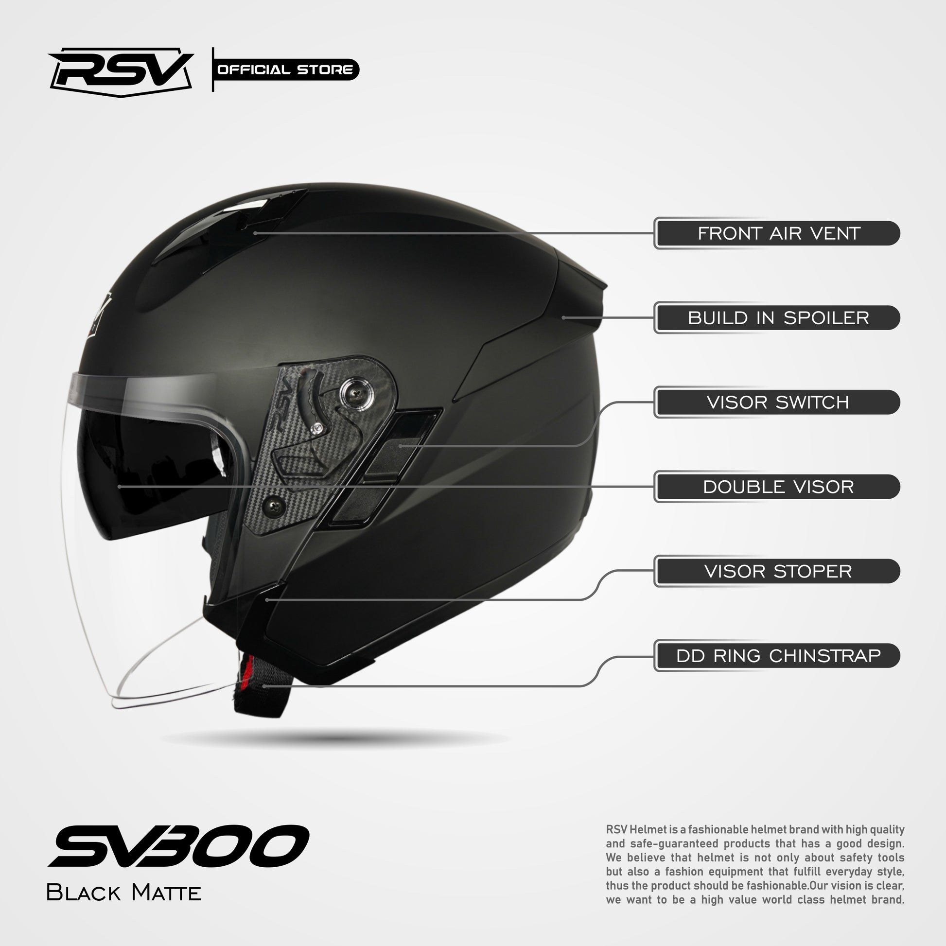 Helm Motor Half Face RSV Original SV300 BLACK DOFF DOUBLE VISOR Helm SNI DOT & ECE R22.05 Helmet Dewasa Pria Dan Wanita