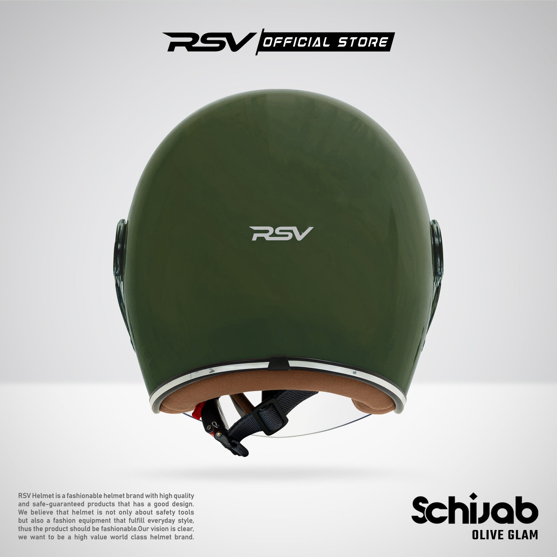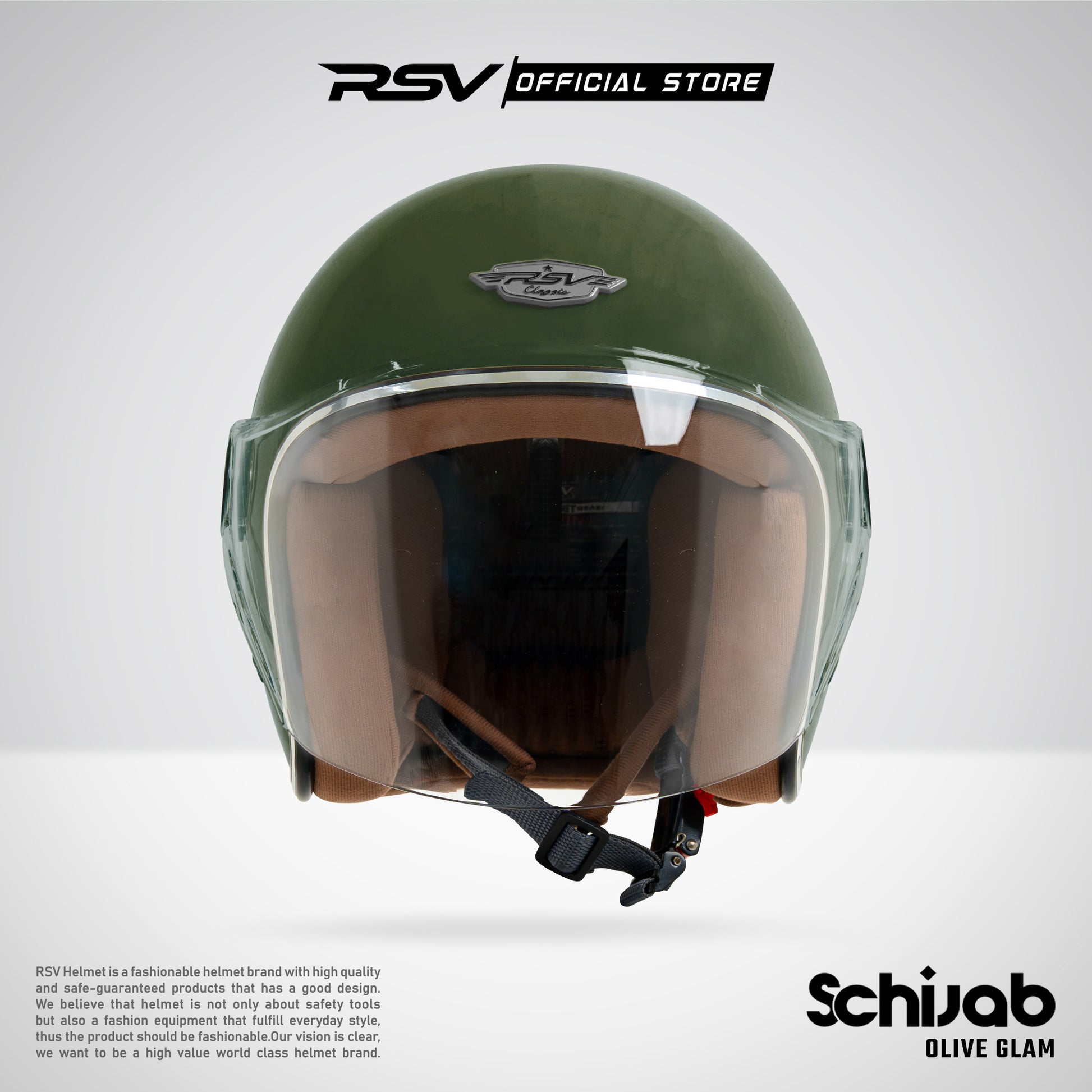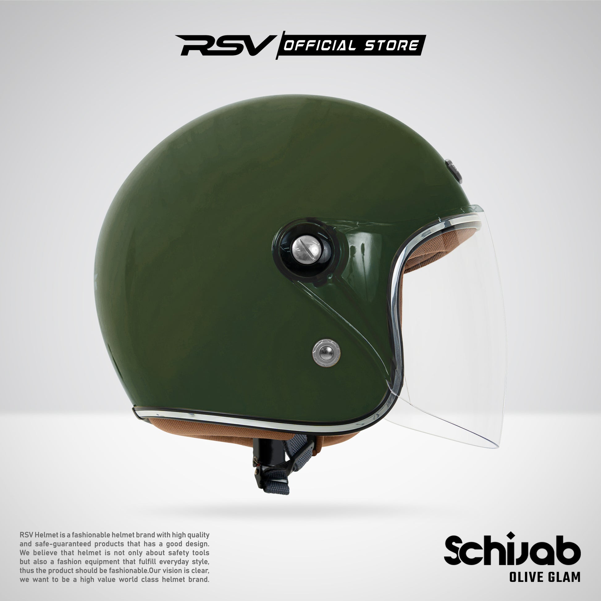RSV SC Hijab Olive Glam Retro Classic Edition – Helm Half Face Hijab Friendly [Helm Only FULLSET]