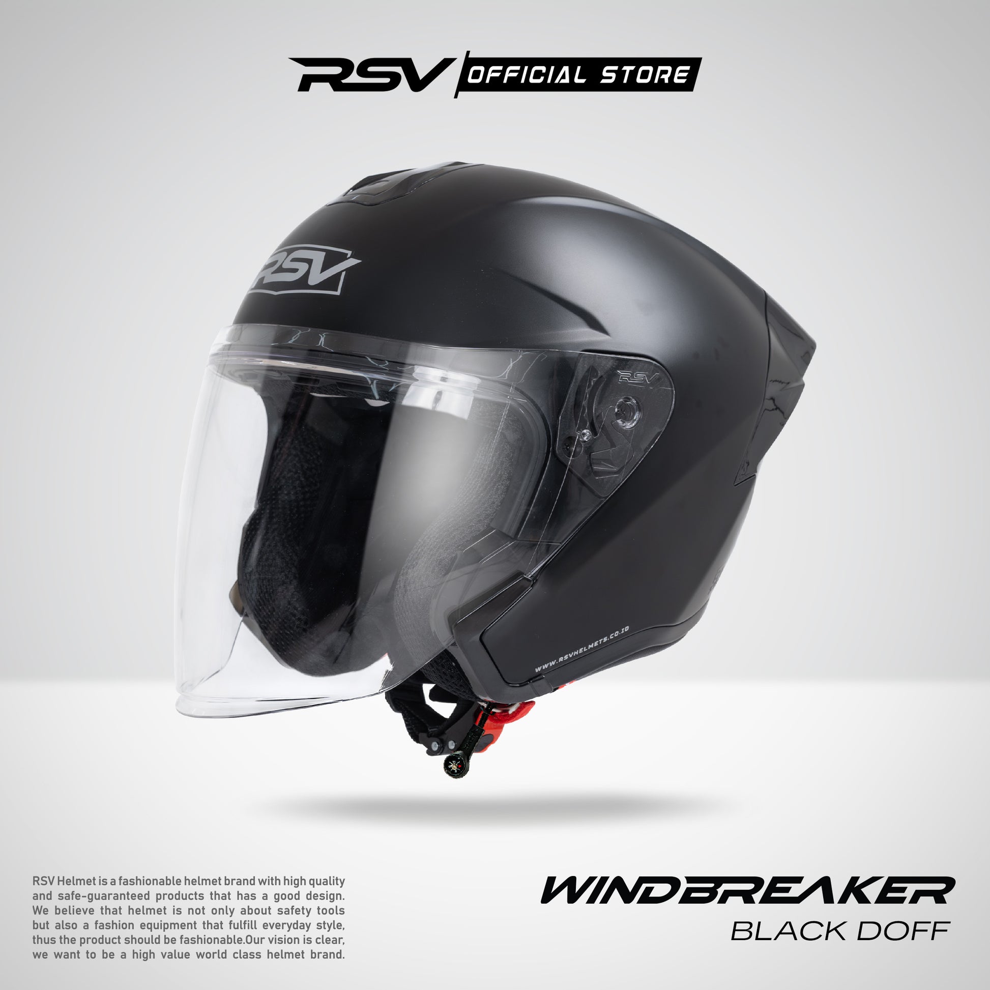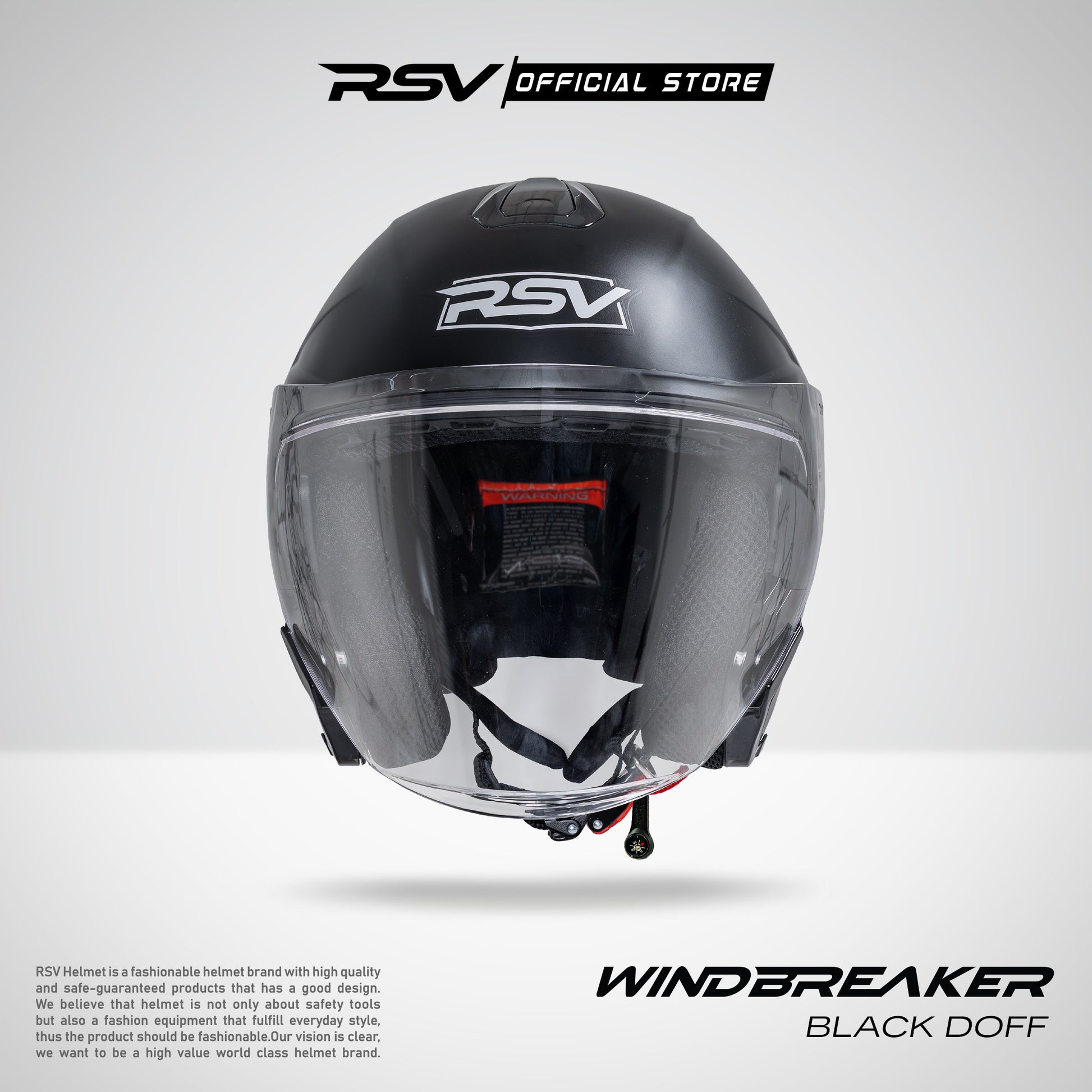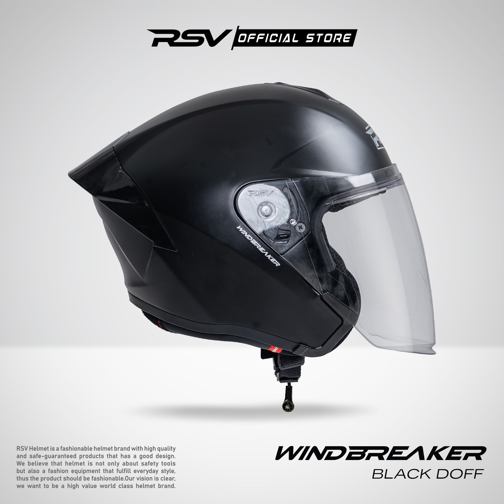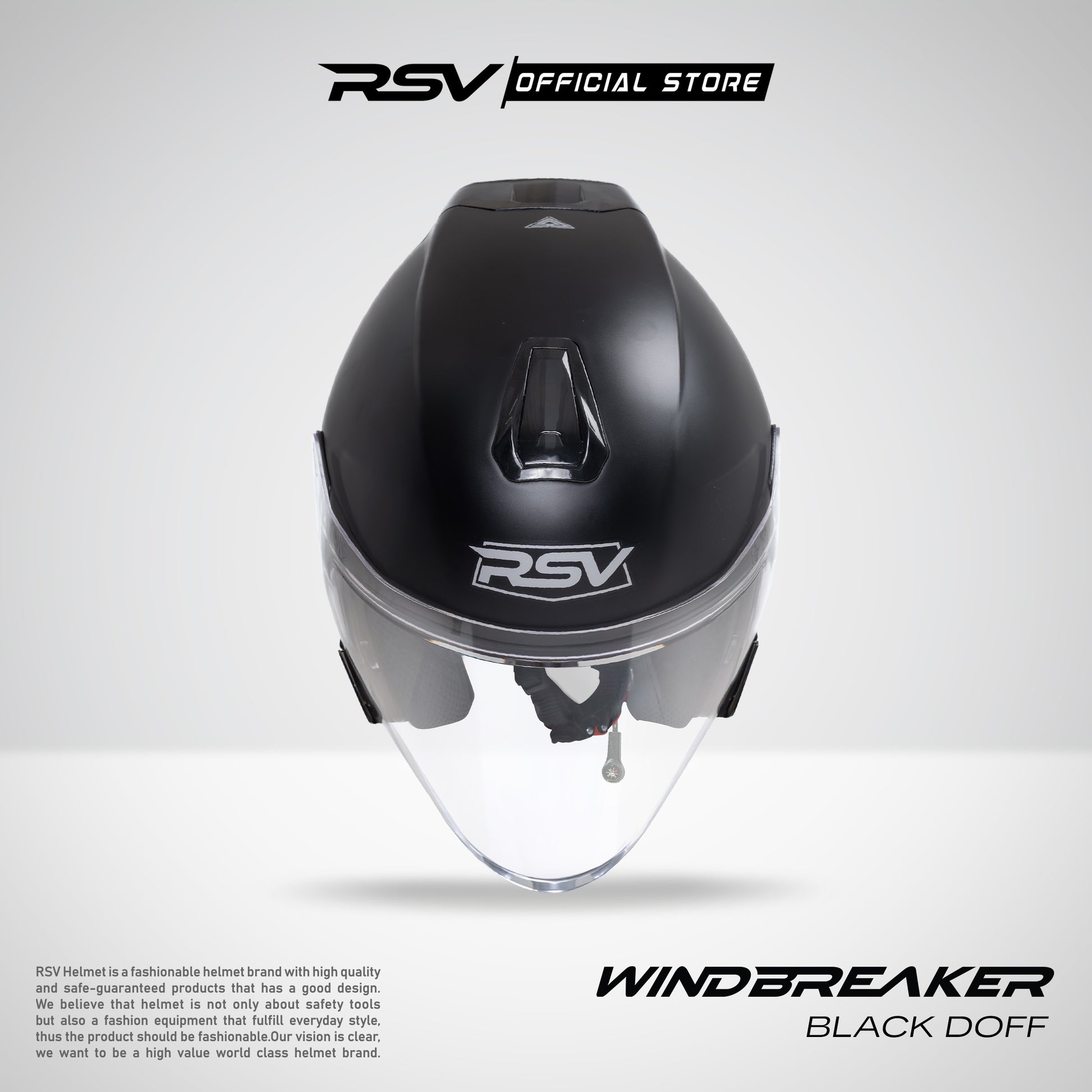 RSV Windbreaker Solid Black Doff Single Visor - Helm Half Face SNI Unisex. Dirancang dengan garis aerodinamis dan detail modern untuk performa yang stabil dan tampilan berkelas! Membuat setiap perjalanan terasa lebih tenang dan berkarakter! 🚗