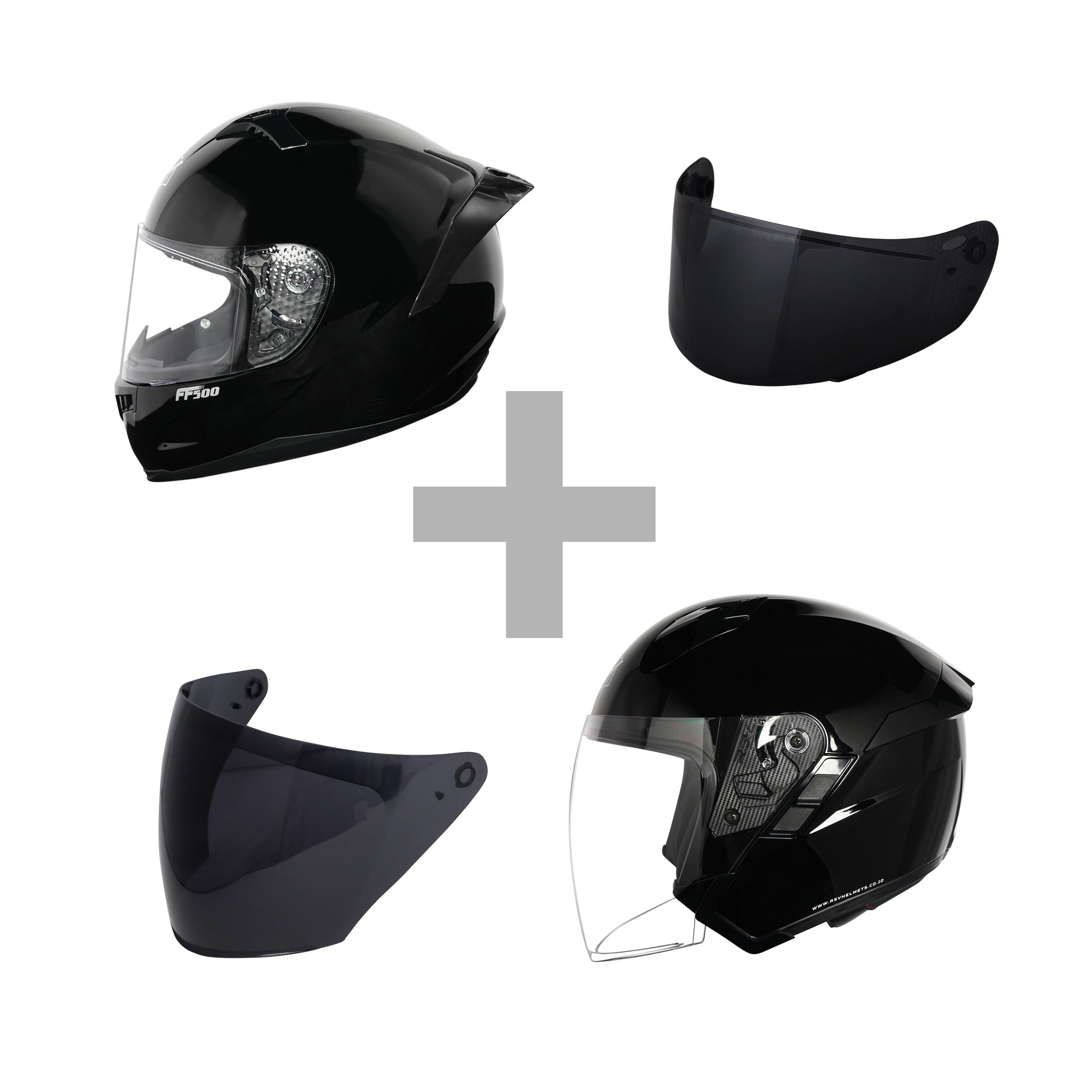 VALENTINE BUNDLING FF500 + SV300 BLACK GLOSSY PAKET GANTENG VISOR DARKSMOKE