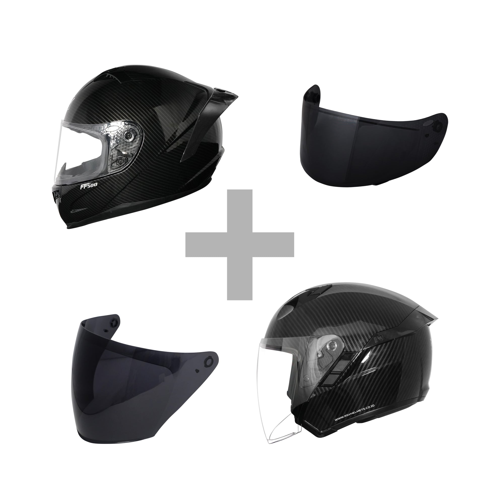 VALENTINE BUNDLING FF500 + SV300 CARBON GLOSSY PAKET GANTENG VISOR DARKSMOKE